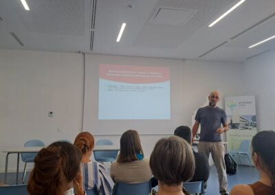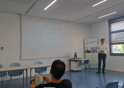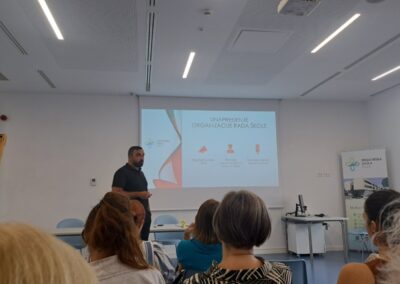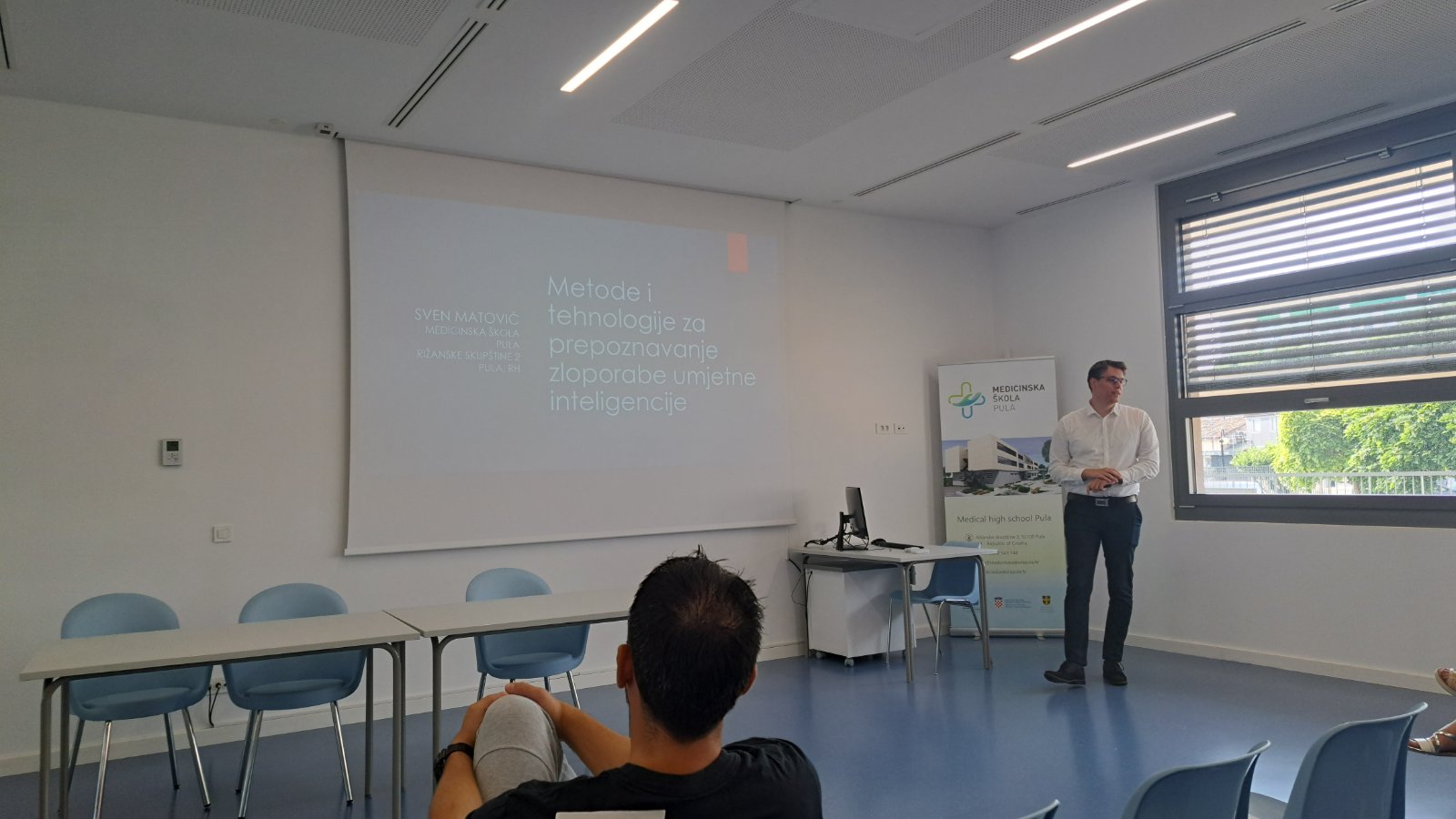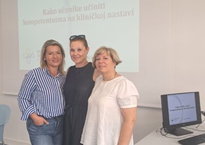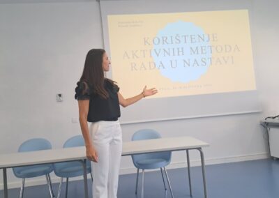 Korištenje tehnologije i nastavi tema je kojoj je bio posvećen treći dan edukacija. Strukovna nastavnica naše škole Danijela Panić, Sven Maričić s Medicinskog fakultete u Rijeci i Erik Nedeljković sa Sveučilišta Jurja Dobrile u Puli prezentirali su Primjenu aplikacije „Igram se i učim“ u nastavi. Uslijedila su predavanja naših djelatnika, profesorice biologije Petre Prenz Smjernice u primjeni tehnologije u nastavnom procesu i profesora engleskog jezika Svena Matovića Metode i tehnologije za prepoznavanje zloporabe AI-a (Chat GPT-ja) u nastavi.