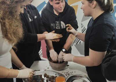 Učenici su aktivno sudjelovali u pripremi i provedbi radionica na temu pravilne prehrane i prevencije pretilosti na zanimljiv i interaktivan način. Jedna od radionica bila je i izrada zdravih kolačića, na kojoj su sudionici imali priliku naučiti kako pripremiti ukusne slastice koristeći prirodne i nutritivno bogate sastojke. Cilj je bio potaknuti međugeneracijsko i vršnjačko učenje, razvoj empatije te povezivanje mladih.