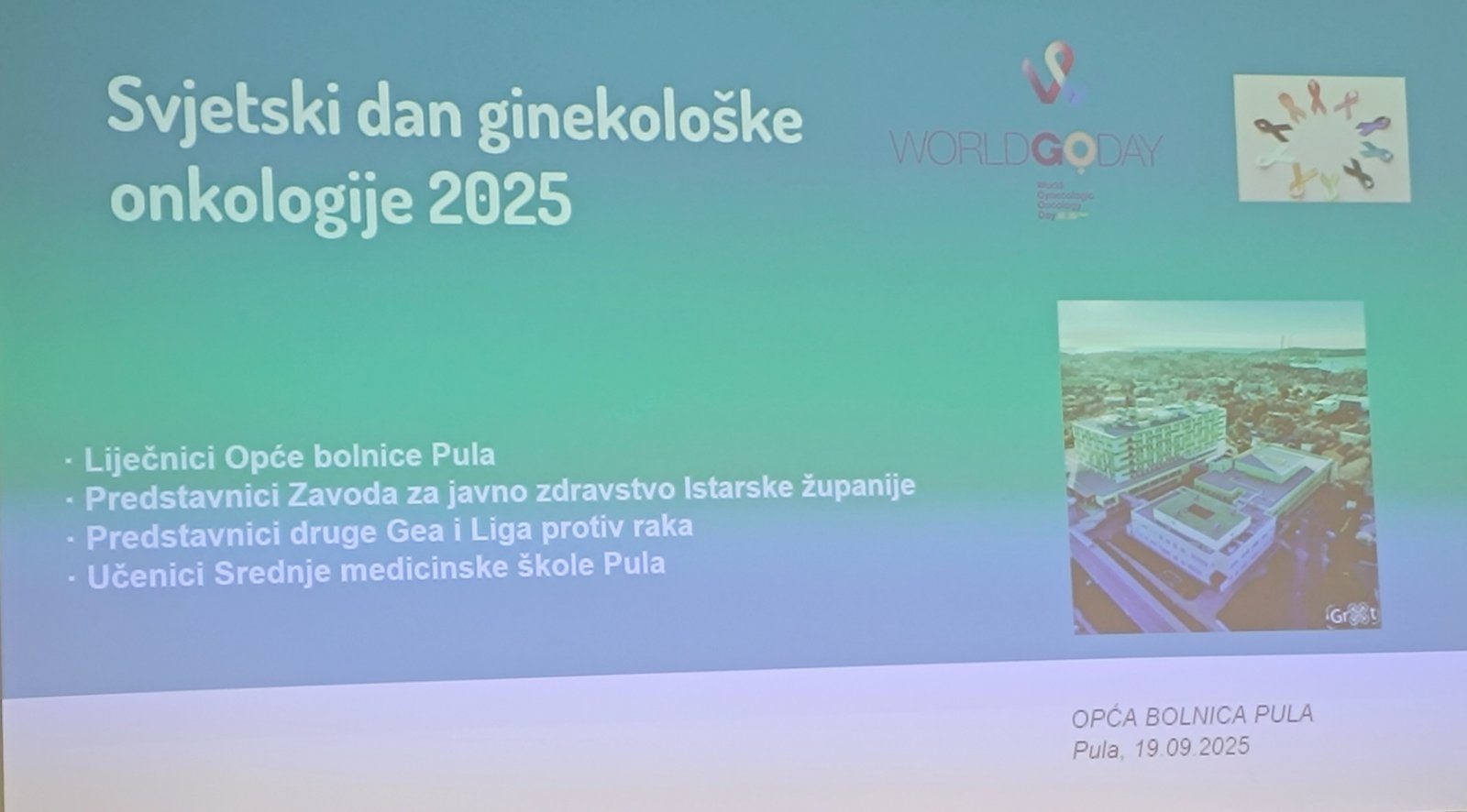 Učenici maturanti usmjerenja medicinska sestra/tehničar opće njege u pratnji strukovnih nastavnica Sobol, Brussich, Dević i Kliba sudjelovali su na obilježavanju Dana ginekološke onkologije koji se održao u petak 19. rujna 2025. godine u predavaonici Opće bolnice Pula