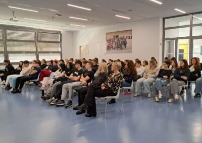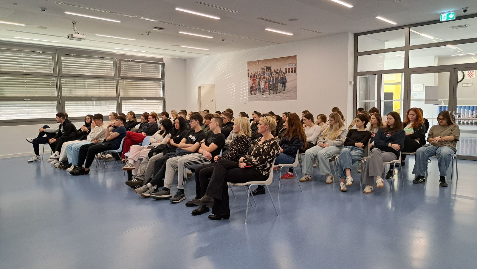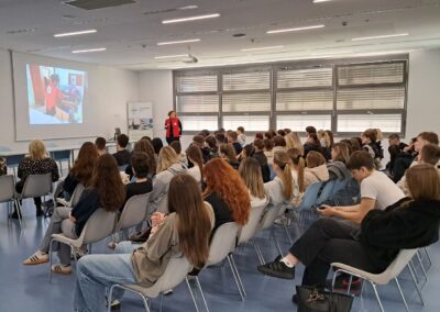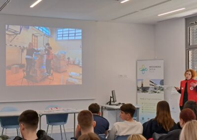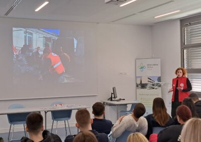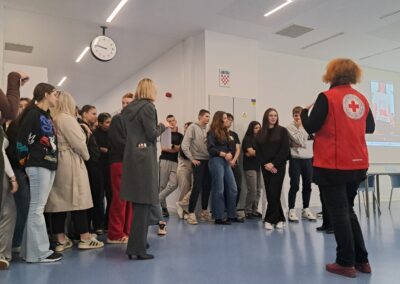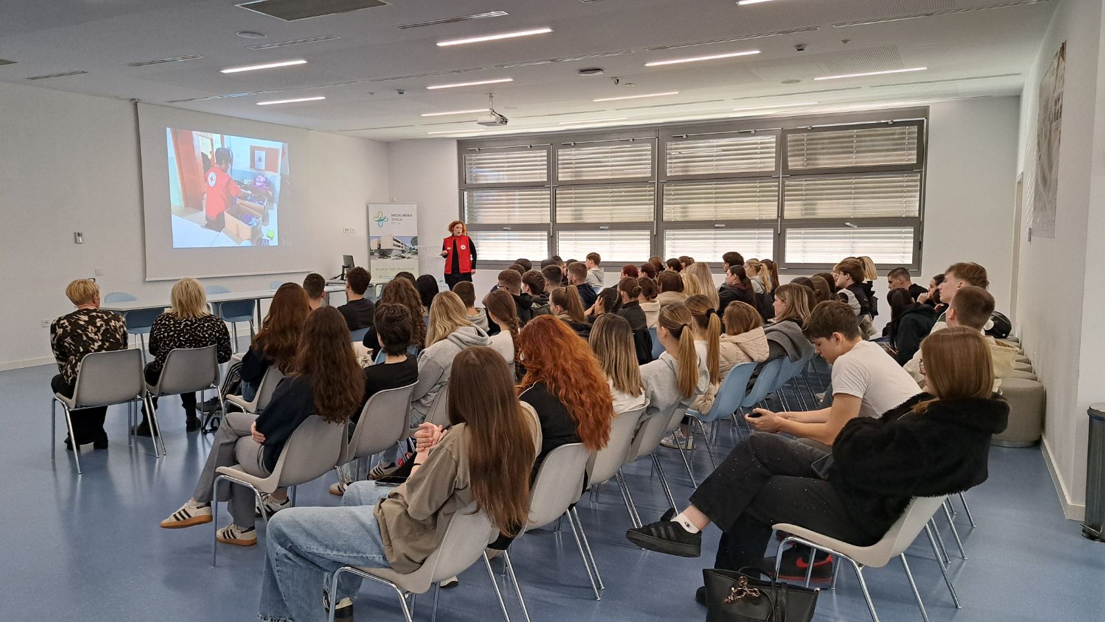U školi je 18. veljače gostovala Jelena Rupčić, voditeljica mladeži, službe traženja i socijalnog programa u Gradskom društvu Crvenog križa Pula. Predavanje je bilo namijenjeno učenicima trećih i četvrtih razreda. Uz brojne fotografije Jelena je učenike upoznala sa širokim poljem djelovanja i aktivnosti koje se provode u Crvenom križu. Kroz cijelo predavanje isticala se važnost volonterskog rada i dobrobiti koju volontiranje donosi osobama kojima se pomaže, ali i samim volonterima. Za kraj predavanja izvedena je mala vježba odabira stavova „slažem se, možda, ne slažem se“ tako da su učenici na određenu tvrdnju odabrali i argumentirali svoj izbor. Predavanje su organizirale strukovne nastavnice Karmen Mušković i Nada Burić.