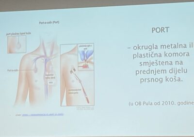 Stručno predavanje Indikacije i značaj port katetera održano je 6. ožujka u Medicinskoj školi Pula. Predavačice Petra Popović i Danijela Pajković iz OB Pula dnevna bolnica upoznale su učenike smjera medicinska sestra/tehničar i zdravstveno-laboratorijski tehničar o značaju port katetera. Koristi se za dugotrajno i ponovljeno davanje lijekova, parenteralne prehrane, infuzija, transfuzija, kemoterapije, imunoterapije te za vađenje laboratorijskih uzoraka krvi, bez potrebe za čestim ubodima u perifernim venama.