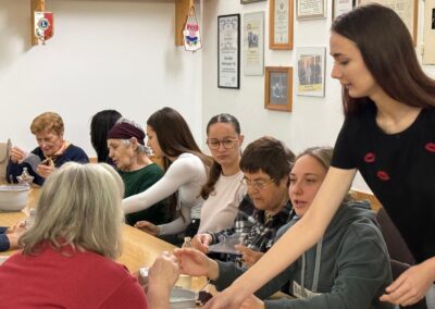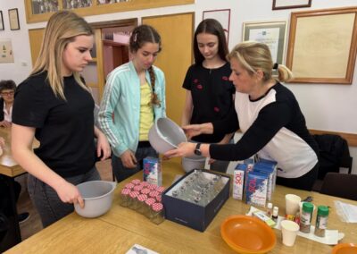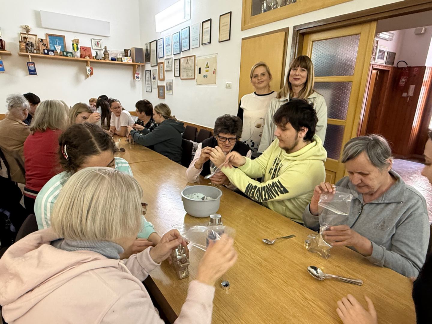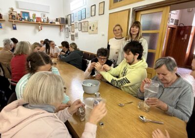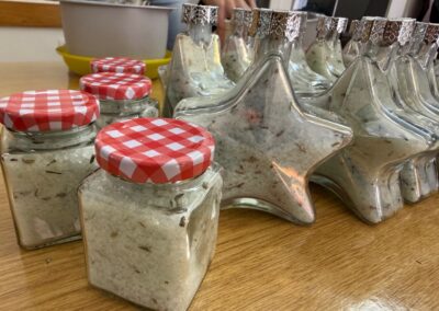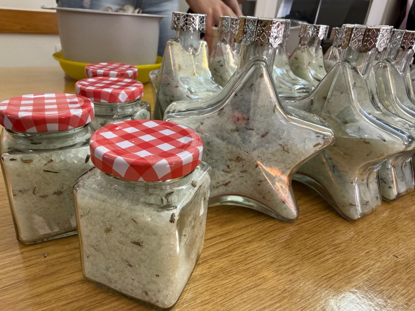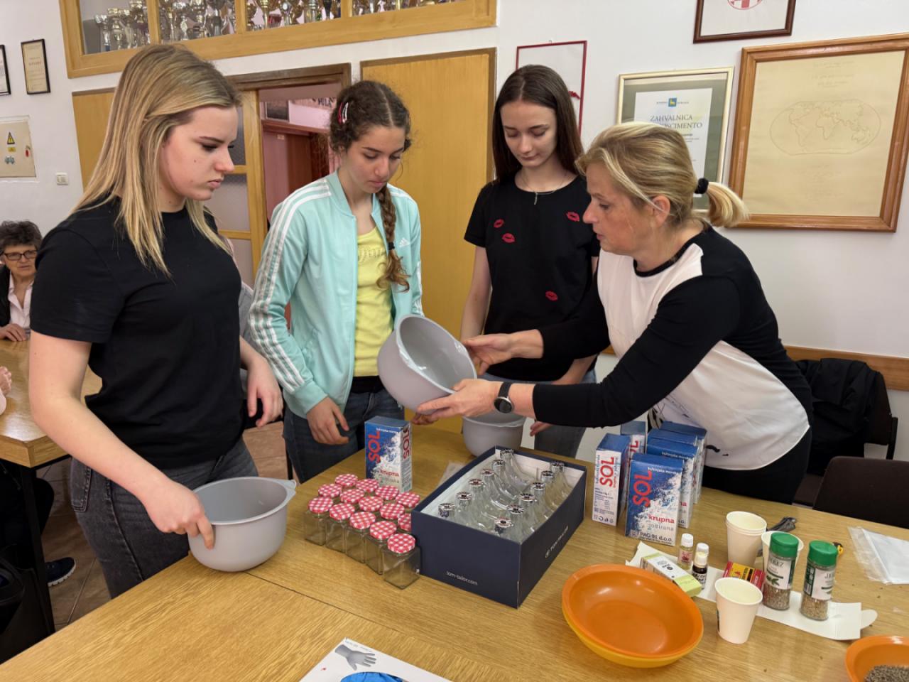 Ovoga puta izrađivale su se mirisne soli za kupanje koristeći krupnu sol, sušenu lavandu, eterično ulje lavande i prehrambene boje, koje su članice pažljivo punile u staklene bočice u obliku zvijezde, stvarajući dekorativne i mirisne pripravke. Slijepe su žene, uz asistenciju svojih pomagača, s velikim interesom sudjelovale u radu, stvarajući jedinstvene poklone.