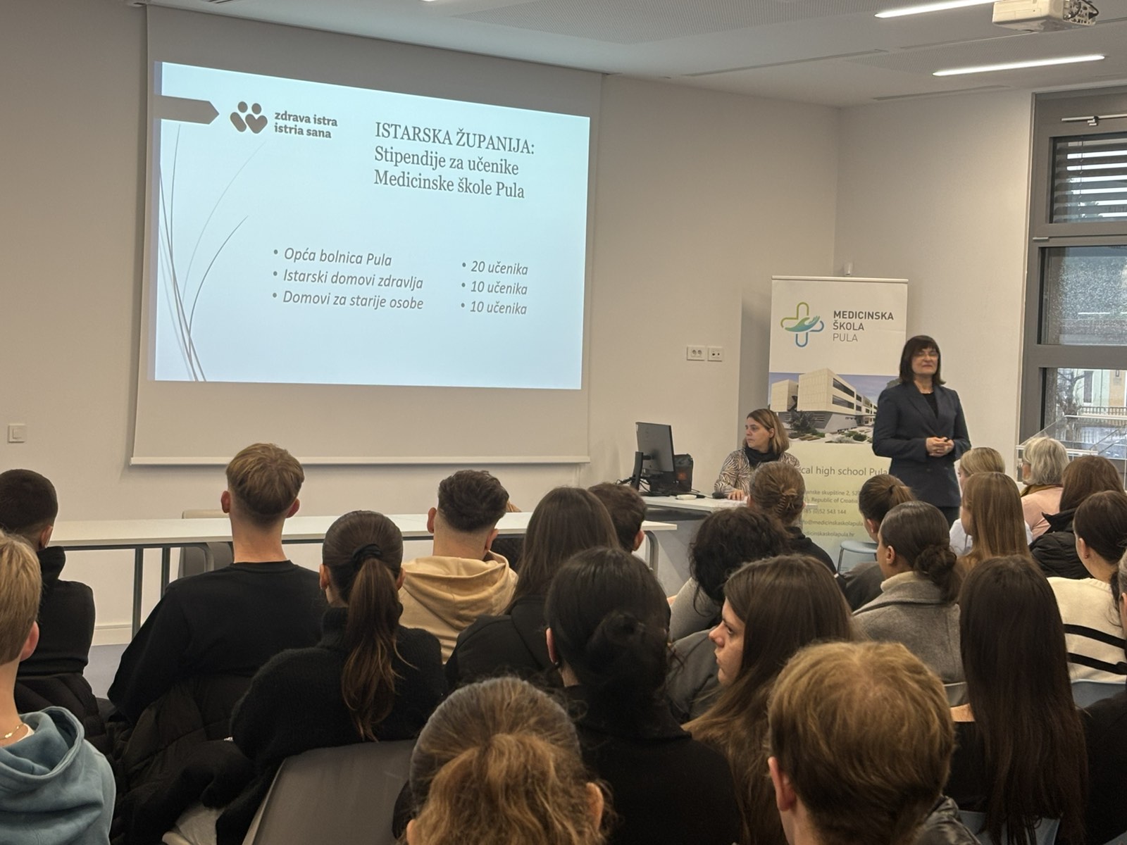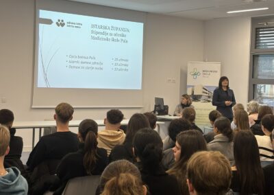 Dana 25. studenoga u našoj je školi održano predstavljanje uvjeta za dodjelu stipendija učenicima Medicinske škole od strane Istarske županije. Uvodni govor održala je dr. Gordana Antić, zamjenica župana Istarske županije istaknuvši važnost ulaganja u buduće zdravstvene djelatnike.